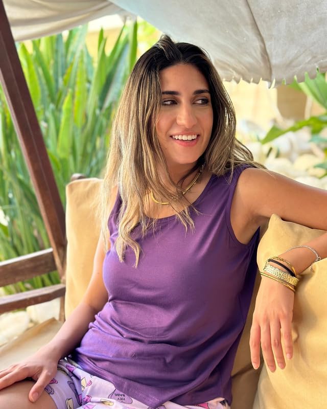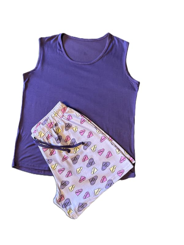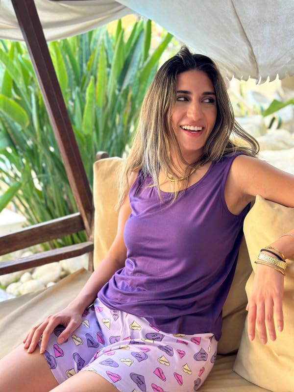 Paj - طقم بيجامة للنساء مكون من توب بلون أرجواني غامق وشورت أرجواني فاتح مطبوع ملون من القطن