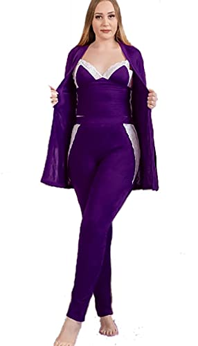 Generic - مجموعة ملابس نوم للنساء - قطن - ذات لون موف- مقاس اكس لارج