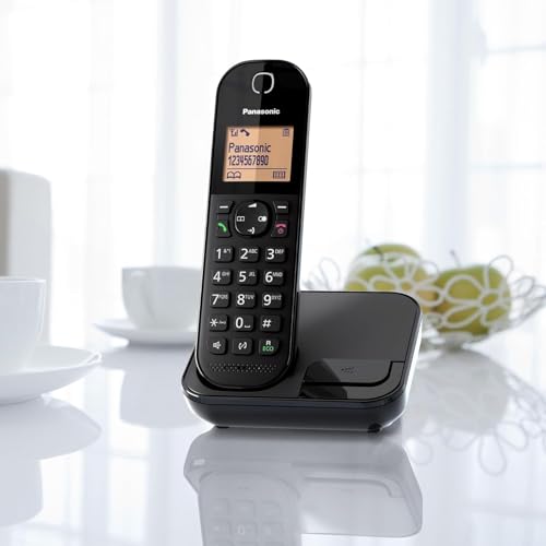 Panasonic - موبايل لاسلكي انيق موديل KX-TGC410 DECT من باناسونيك مع قاعدة مدمجة - باللون الاسود