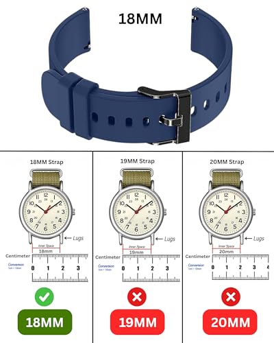 PANTAN - سوار ساعة من السيليكون الناعم 18 ملم مع مشبك معدني يتوافق مع جميع الساعات الذكية وساعات انالوج 18 ملم من بانتان
