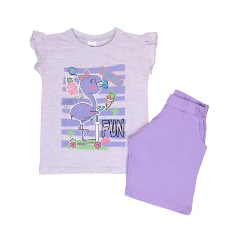 Papillon - طقم بيجامة للبنات من بابيون، تيشرت بدون أكمام وشورت بطباعة فلامنجو، طقم 2 قطعة