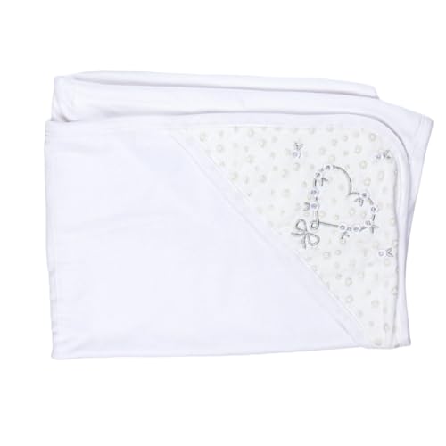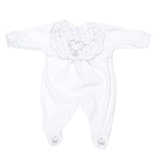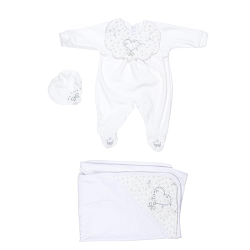 Papillon - بابيلون طقم قطيفة مكون من 3 قطع سالوبيت بكباسين واكمام طويلة وطاقية، بطانية مطرزة على شكل قلب للبنات، لون ابيض، لحديثي الولادة