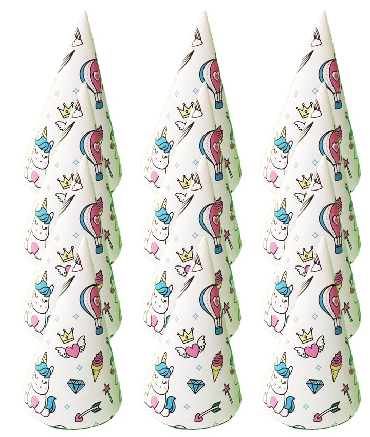 Generic - قبعة ورقية للحفلات مزينة بطبعات يونيكورن 12 قطعة