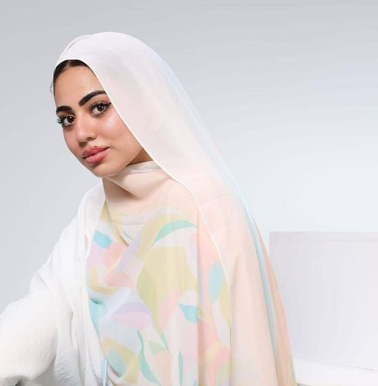 Generic - حجاب باستيل بطباعة هندسية، قماش خفيف الوزن، ابيض مع نمط متعدد الالوان