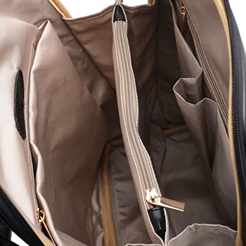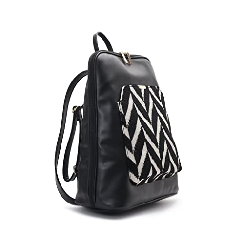 Generic - شنطة ظهر للاب توب باللون الاسود ومزينة بقماش منقوش ابيض واسود من بافو - كود 2000، شنطة ظهر/ كروس, أسود, 30x25cm 12x10inch