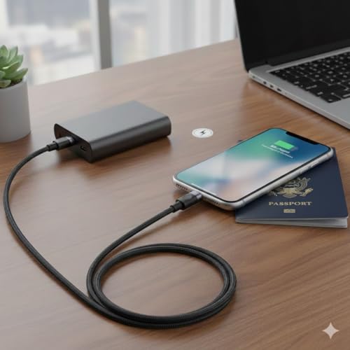 • كابل شحن سريع معدني مجدول بطول 1 متر