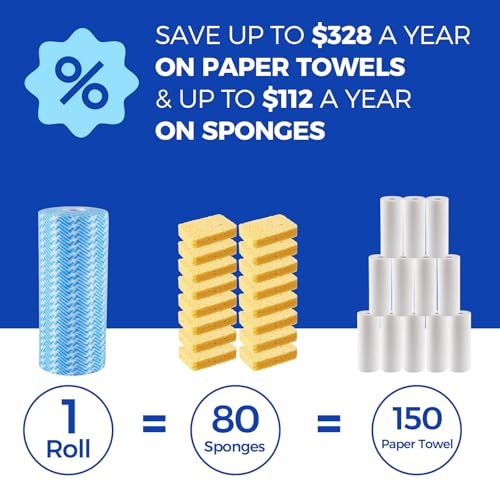Peachicha - لفافات تنظيف للاستعمال مرة واحدة من بيتشيتشا، مناديل هاندي المبللة القابلة لاعادة الاستخدام، مناشف مطبخ جافة قابلة لاعادة الاستخدام، مناشف للاطباق، لفة واحدة، اجمالي 100 قطعة، ازرق