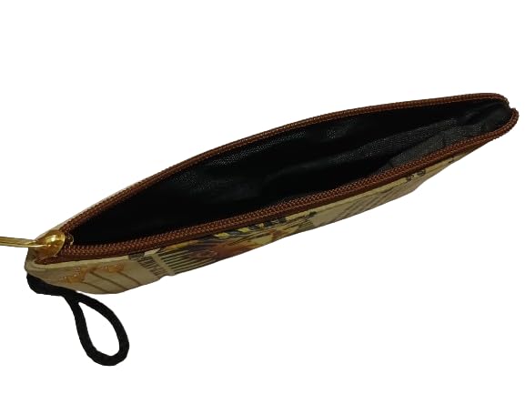 Generic - حافظة اقلام / مكياج رسومات جميلة اسود في بيج، الجلد المدبوغ