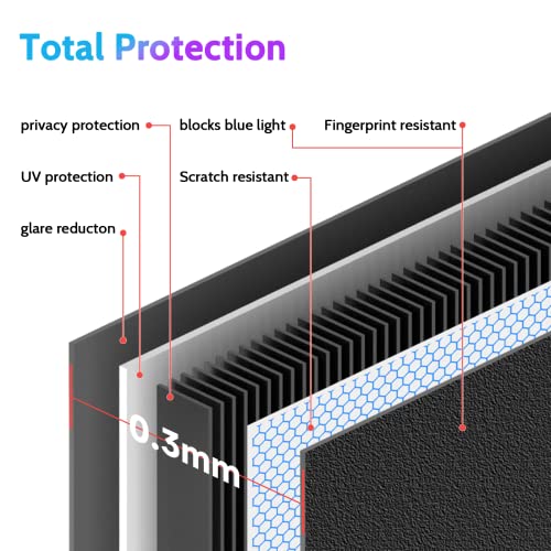 • 【مواد وصناعة حرفية عالية الجودة】تم تصميمها وفقًا لحجم الشاشة الحقيقي 1:1، المقاس مطابق تمامًا. تتميز طبقة نقل الضوء المصنوعة من مواد متطورة بمعدل نقل ضوئي عالي للغاية. لذا فإن كل هذا سيجعلك تتمتع بشاشة خصوصية فائقة الدقة لجهاز ماك بوك 13.6 بوصة بجودة صورة لا مثيل لها قريبة من الصورة الأصلية.