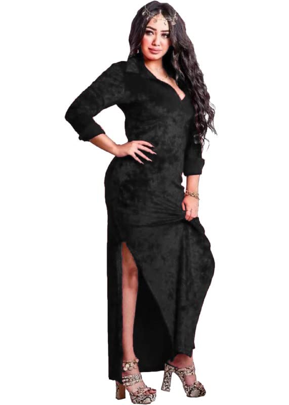 Generic - جلبية حريمي بيتي قطيفة بفتحة من الجانب