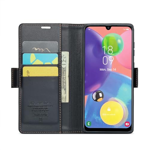 Generic - جراب موبايل من الجلد الصناعي بغطاء قلاب وفتحة للكروت متوافق مع موبايل سامسونج جالاكسي A70، أسود