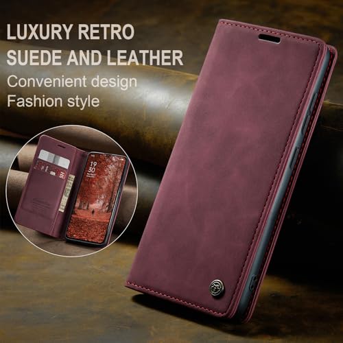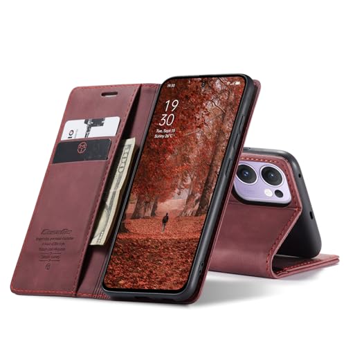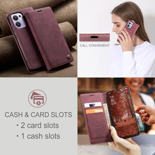 UNBLACK - جراب موبايل بتصميم فاخر من جلد صناعي 013، غطاء قلاب بفتحة للبطاقات متوافق مع أوبو رينو 13F (أحمر نبيذي) من انبلاك