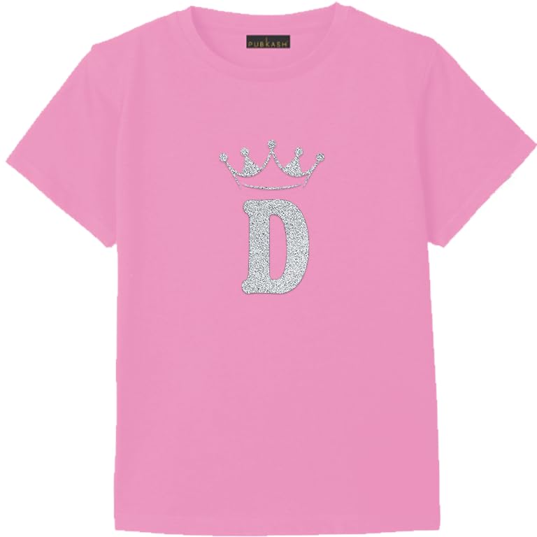 Generic - تيشيرت كاجوال من القطن بلون وردي مزين بحروف تاج (D) مقاس (S)