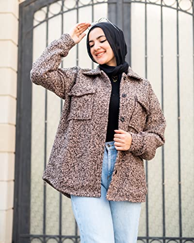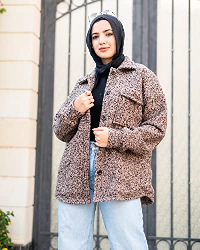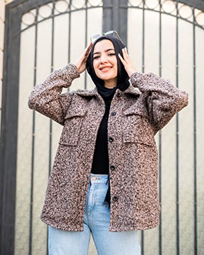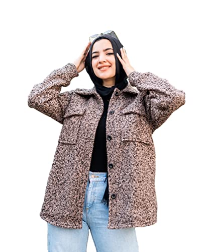 Pinky - جاكيت شتوي صوف بمقاس فضفاض للنساء من بينكي