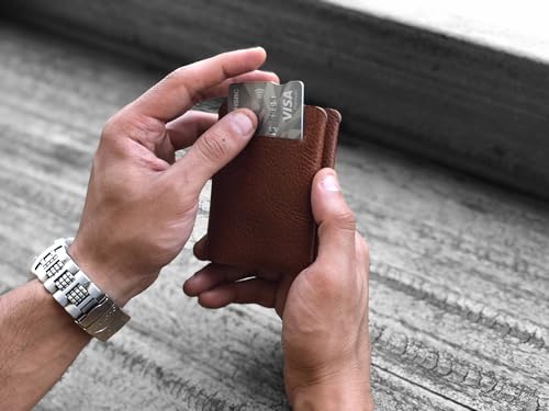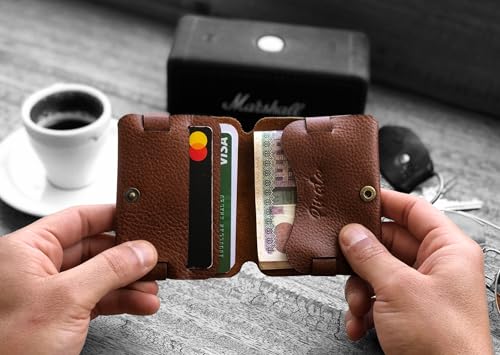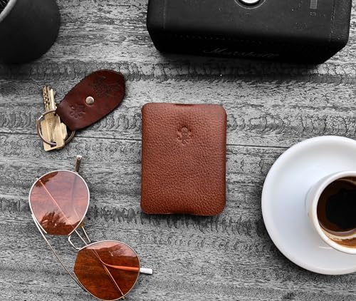 Generic - محفظة جلد اسطوانية مصنوعة يدويا للرجال من بيراتا - جلد طبيعي 100%، اغلاق كبسولة، تصميم نحيف يحمل ما يصل الى 8 بطاقات، 10 × 8 × 1 سم - صنعت في مصر (بني فاتح)