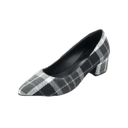 Generic - حذاء كاروهات بكعب سهل الارتداء للنساء