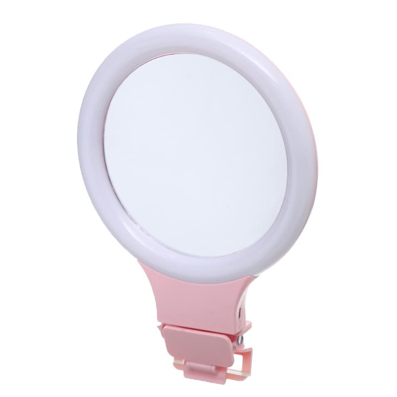 Generic - مراية بإضاءة حلقية بلاستيكية بتصميم لطيف وحامل بلاستيكي - مقاس 16 سم - زهري - موديل A6