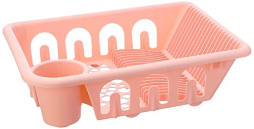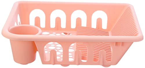 Generic - رف لحمل الاطباق من البلاستيك الفاخر مع صفاية، مقاس 60×30- لون روز، زهري
