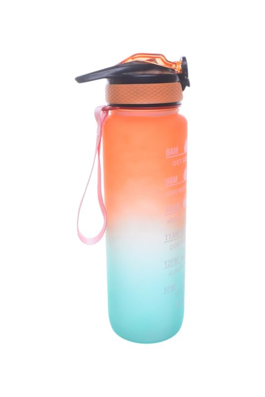 Generic - زجاجة رياضية بلاستيكية، 1000 مل - برتقالي واخضر