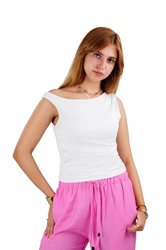 Generic - بلوزة نسائية بكتف واحد غير متماثل من بلين دي في - 100% قطن مع ليكرا | قصة ضيقة وناعمة وقابلة للتمدد | تي شيرت كاجوال أنيق للاستخدام اليومي والسفر والطبقات