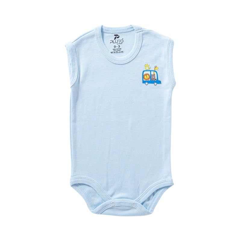 PLU2 Kids - سالوبيت قطن بكباسين بدون أكمام للأولاد البيبي من بلو 2 - لون أزرق