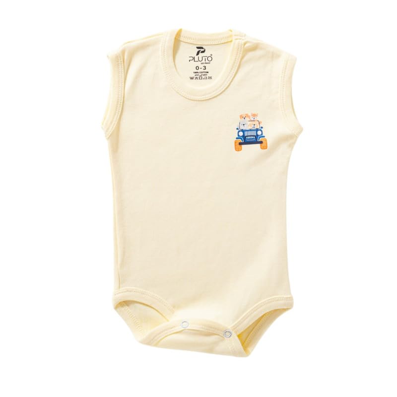 PLU2 Kids - سالوبيت بكباسين قطن بدون أكمام بتصميم خاص للأولاد البيبي من بلو تو، أصفر