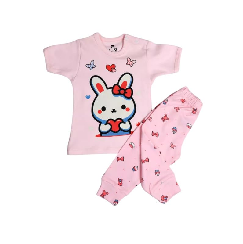 Plu2 - طقم بيجامة بتصميم ارنب وقلب للاطفال من بلو2، قطعتين - بينك