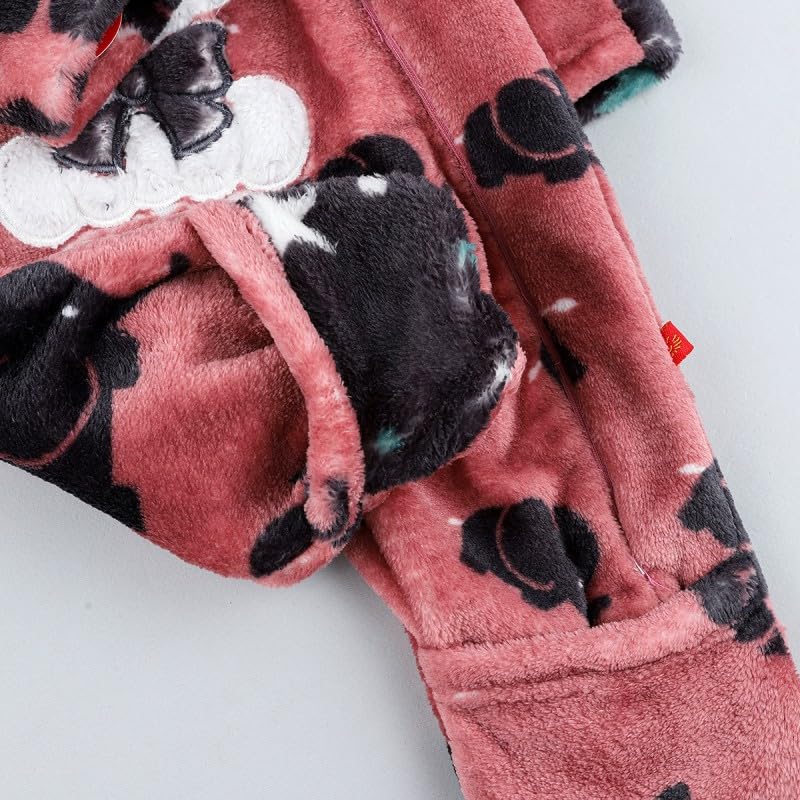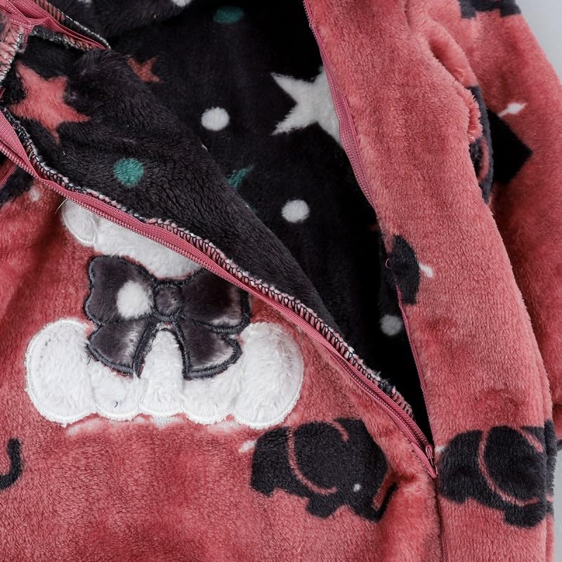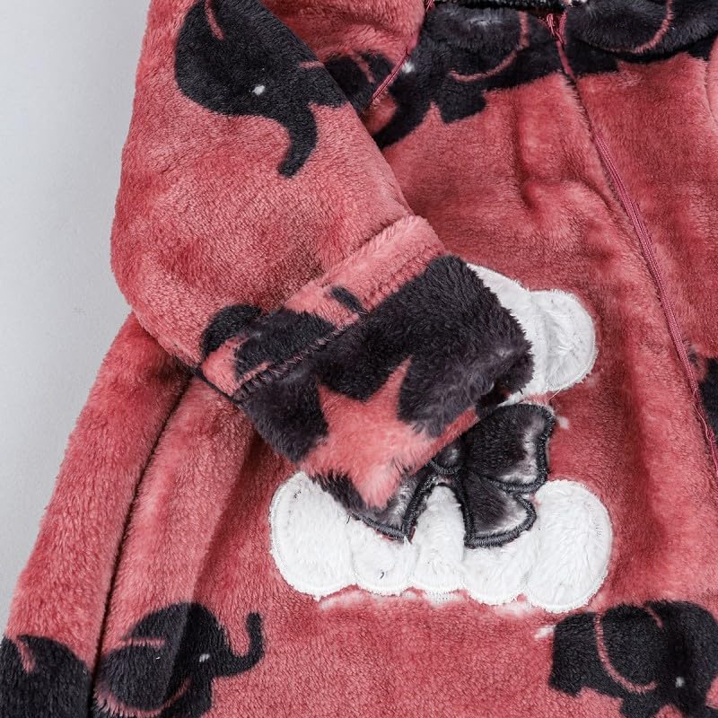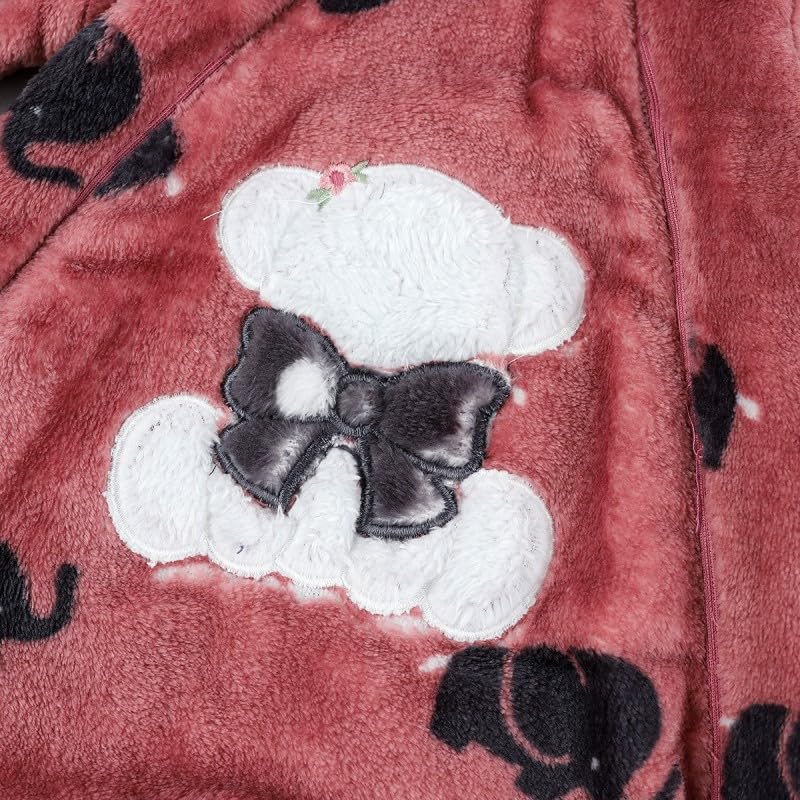 Generic - سالوبيت قطيفة للاطفال مع تطريز دب تيدي - بورغندي، مقاس 3-6 اشهر