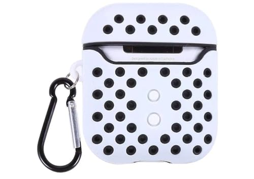 Generic - غطاء حافظة منقط من السيليكون الناعم ذو طبقة مزدوجة مع خطاف مضاد للفقدانات لهواتف (LED أمامية مرئية) (رمادي ×اسود)، لسماعات ايربودز