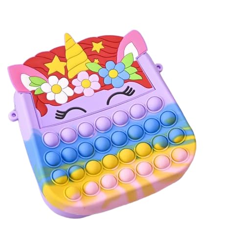 Generic - شنطة كروس بوب ات من سلسلة يونيكورن، حبل بالوان قوس قزح، محفظة سيليكون بتصميم فقاعات دفع
