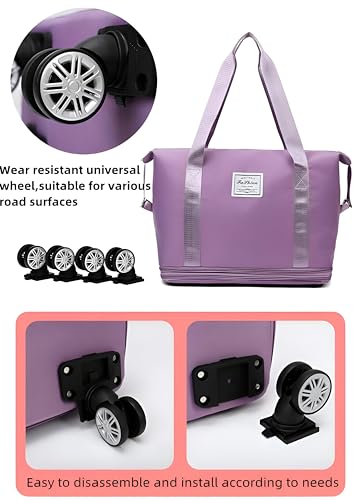 • مزودة بعجلات قوية ومتينة، توفر حقيبة السفر المحمولة هذه سهولة المناورة ويمكنها التعامل مع الأحمال الثقيلة بشكل مريح، مما يجعل النقل سهلاً ويقلل الضغط أثناء الحركة.