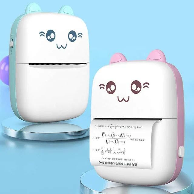 Generic - طابعة حرارية فورية محمولة بتصميم كرتوني لطيف، تدعم الطباعة اللاسلكية عبر البلوتوث، مثالية للملاحظات، الملصقات، والمهام الدراسية