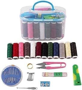 - مجموعة متكاملة: تحتوي على خيوط متعددة الألوان، إبر خياطة، مقص، وأدوات خياطة أساسية في علبة بلاستيكية شفافة