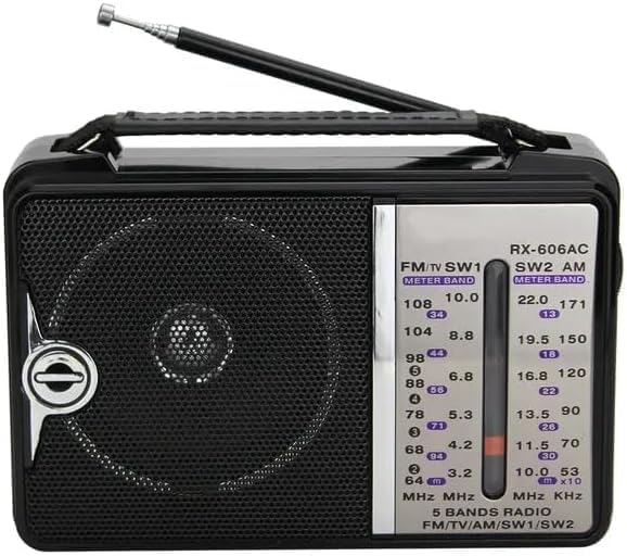 Generic - راديو جولون كهربائي صغير محمول كلاسيكي يعمل على الكهرباء والبطاريات و4 نطاقات ايه ام واف ام وSW1 وSW2 RX-606