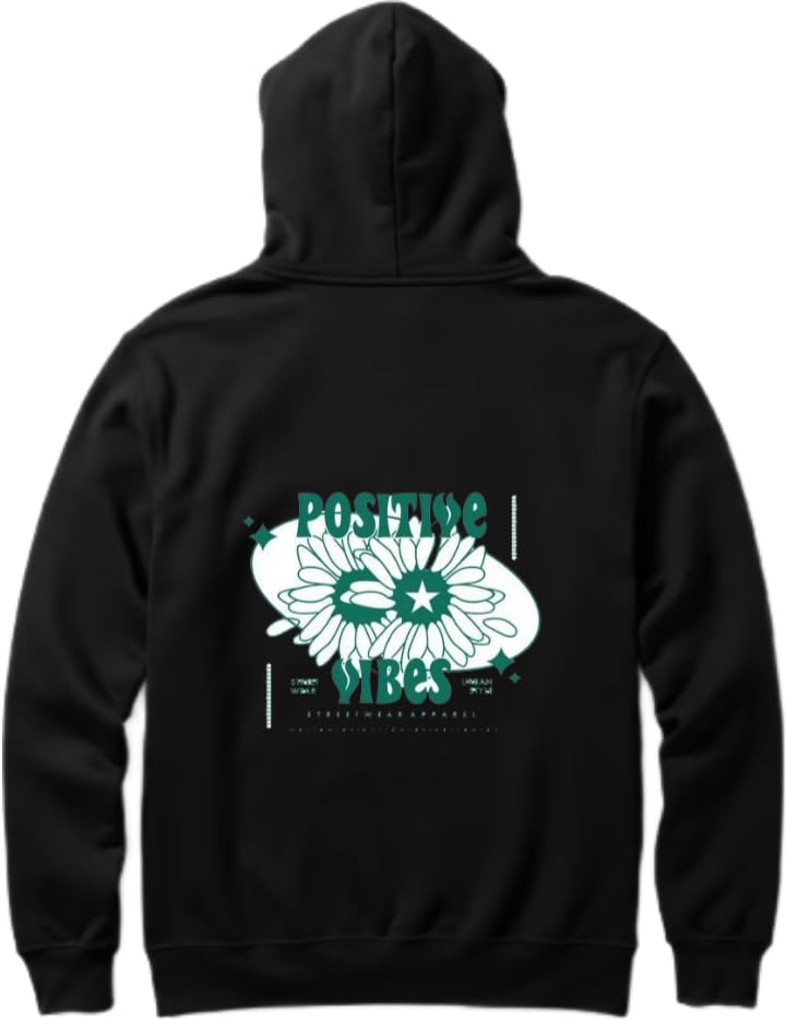 Generic - POSITIVE VIBES كنزة ذات قبعة أسود