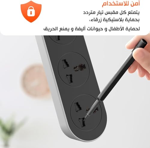 Generic - مقبس تمديد مشترك الطاقة طراز M-6009، مزود بـ3 منافذ بـ2 منفذ USB و1 منفذ نوع C، شحن تلقائي 2500 وات 10 امبير، حماية من الحمل الزائد، واقي من زيادة التيار للاستخدام المنزلي
