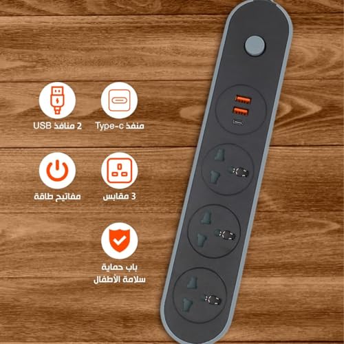 - طاقة متكاملة للمنازل المزدحمة - يوفر مقبس تمديد مشترك الطاقة هذا 3 منافذ بالإضافة إلى 2 منفذ USB و1 منفذ نوع C في موزع واحد. بفضل الحد الأقصى للحمل 2500 وات (10 امبير) والحماية المدمجة من زيادة التيار والحمل الزائد، فإنه يحافظ على تشغيل الموبايلات وأجهزة التابلت والمصابيح والأجهزة الصغيرة معًا بأمان.
