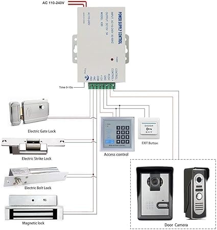 Generic - باور سبلاي متحكم K80 12V 3A لنظام هاتف باب وانتركوم فيديو بمدخل جهد متردد من 110V إلى 240V ويدعم قفل الباب الكهربائي المفتوح بالوضع الأساسي والمغلق بالوضع الأساسي وزر المخرج، مزود طاقة لجرس باب فيديو
