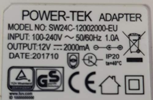 POWER-TEK - ادابتور 12 فولت / 2 أمبير - باور - تيك، أسود، لمشغلات الألعاب، يو اس بي