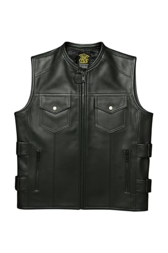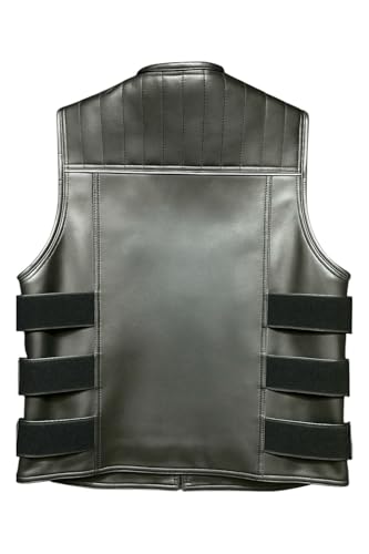 Generic - سترة تكتيكية من الجلد الفاخر مع احزمة جانبية قابلة للتعديل، اسود