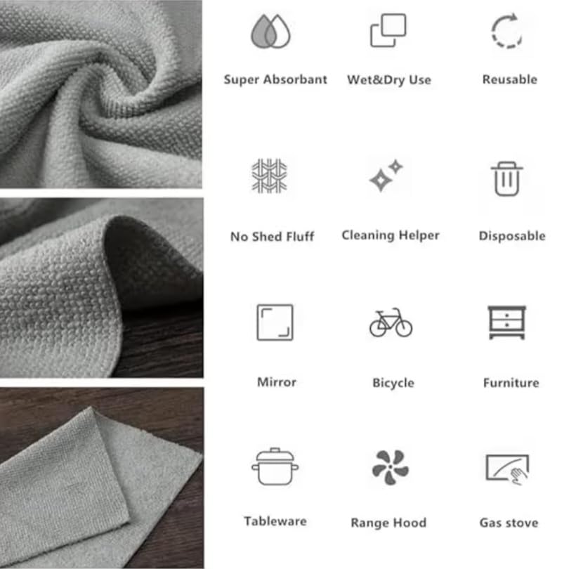 - المقاس والمواد: أقمشة مايكروفايبر فاخرة مقاس 20 × 20 سم، سميكة لتعزيز المتانة وفعالية التنظيف