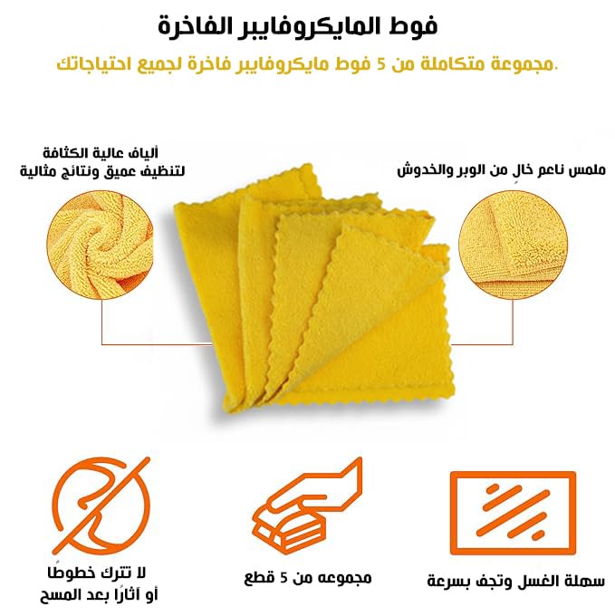- 1. امتصاص فائق وسرعة تجفيف مذهلة: مصنوعة من ألياف مايكروفايبر عالية الكثافة تمتص الماء والأوساخ بفاعلية غير مسبوقة، لتمنحك سطحًا جافًا ونظيفًا في ثوانٍ.