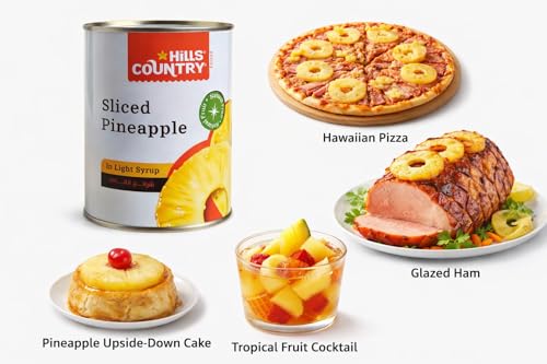 - جاهز للاستخدام – برطمان كمبوت أناناس مُقطّع مسبقًا في شراب خفيف لتحضير الوجبات بسرعة والاستمتاع الفوري.