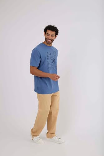 Premoda - تيشرت كاجوال من القطن بقصة عادية للرجال من بريمودا، بلون أزرق دينيم، مقاس M