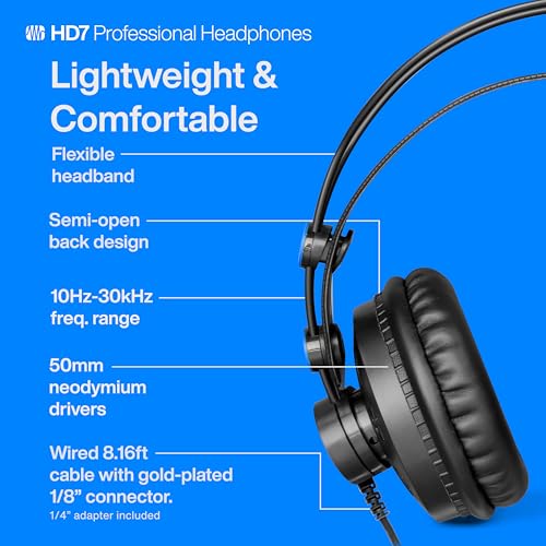 PreSonus - سماعات الراس للمراقبة الاحترافية HD7 من بريسونس، سلكي، فوق الاذن، أسود، اتش دي 7