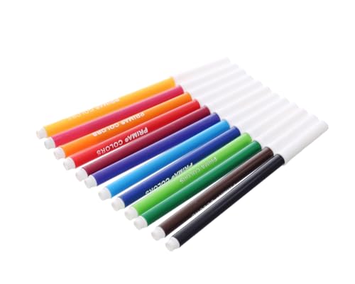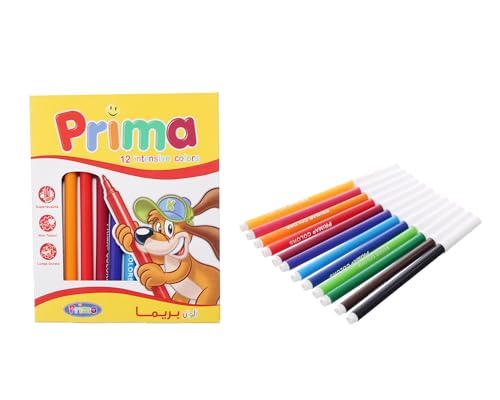 Prima. - أقلام بطرف لباد من بريما، (12 لون، في صندوق أصفر) مجموعة متعددة الاستخدامات للإبداع الفني والأكاديمي