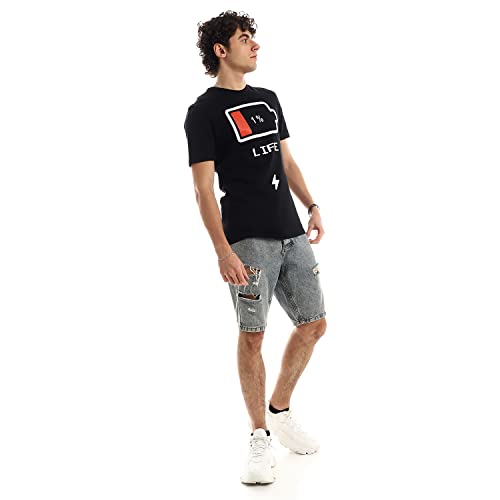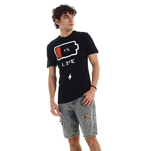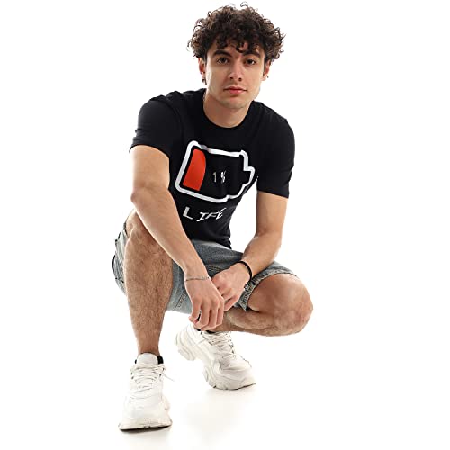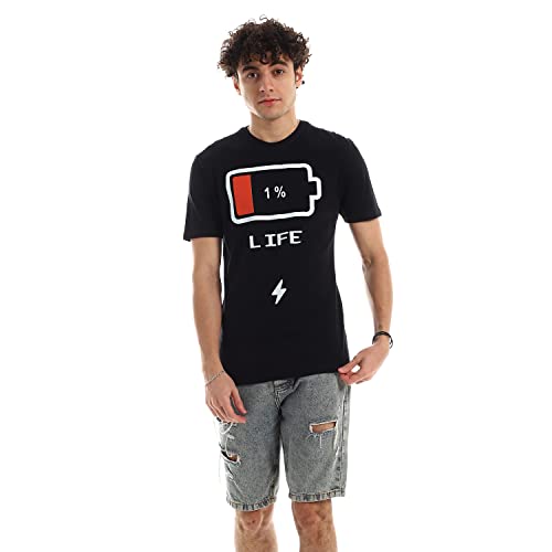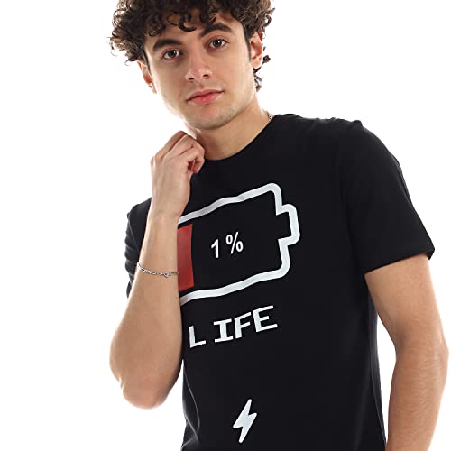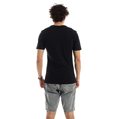Mesery - تيشرت باكمام قصيرة ورقبة دائرية بطبعة منقوشة للرجال, أسود, XL