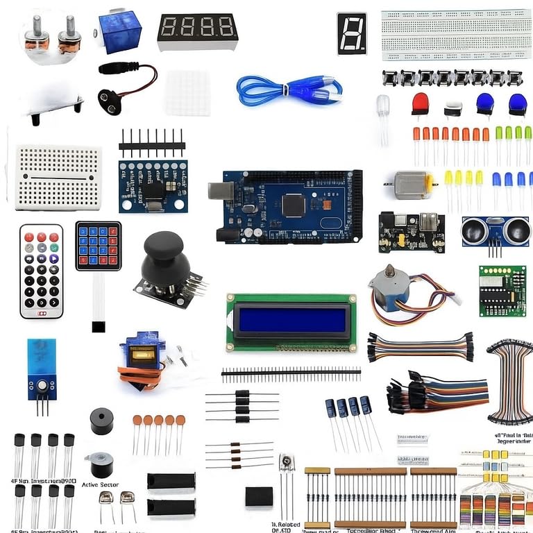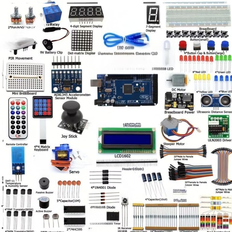 GENERIC - مجموعة المشاريع + لوحة توصيل + LCD + مستشعرات | كيت مشاريع اردوينو مع بورد اختبار، شاشة، حساسات، محرك ومتحكم – شامل للمبتدئين