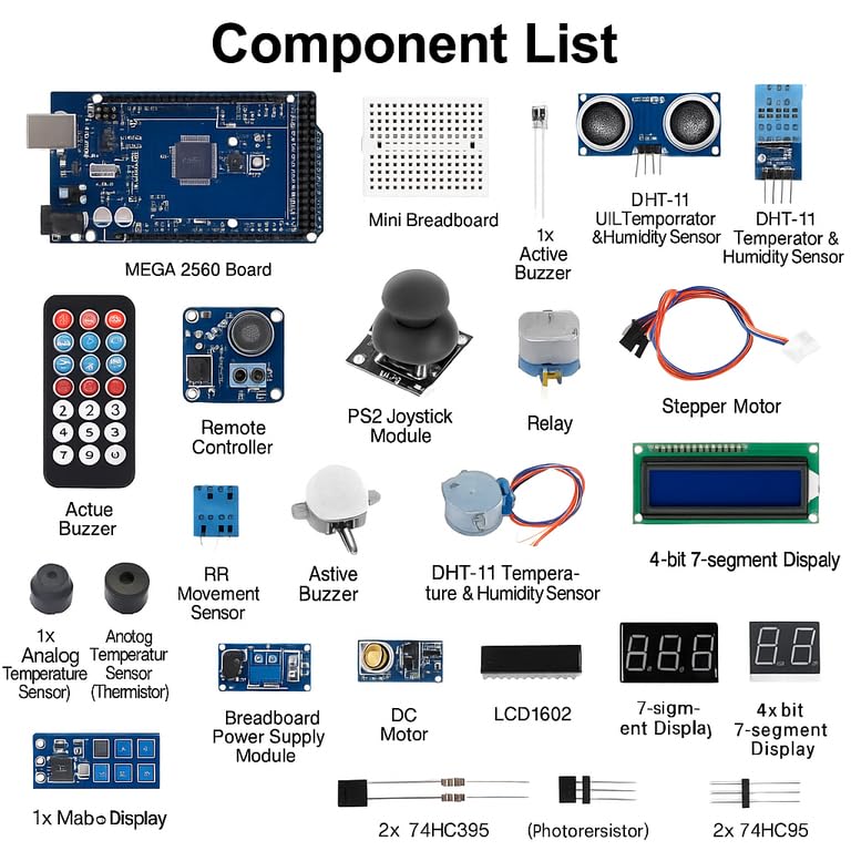 - قد تتضمن لوحة توصيل صغيرة وأجهزة استشعار وشاشة عرض للمشاريع.