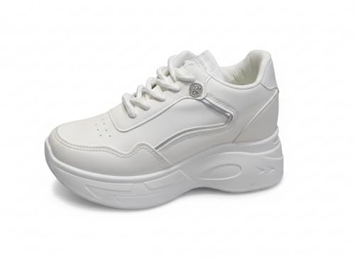 Project Z - كوتشي سنيكرز نسائي Z-Urban Chic من Project Z - وجه جلد ونعل PVC مرن - فرش داخلي مائل لزيادة الطول - حذاء كاجوال مريح للمشي والعمل مقاس 36-40